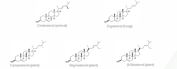 1. Ergosterol, 2. Cholesterol, 3. Camesterol, 4.Stigmasterol, 5. β-Sitosterol