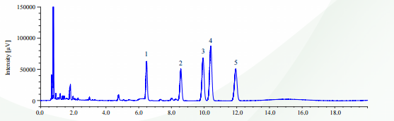 Như thể hiện trong hình 2, cột UHPLC có độ phân giải cao (2.0 mm ID x 150 mm L, 1.9 μm) tách hoàn toàn campesterol (peak 3) và stigmasterol (peak 4) với độ phân giải cao so với đường nền.
